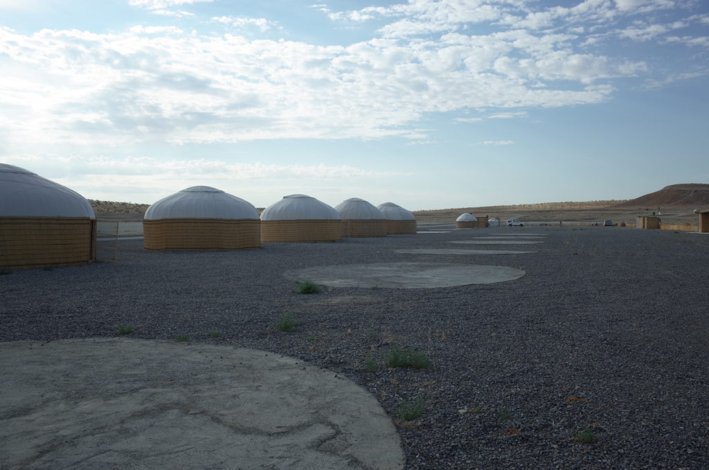 私たちが泊まってたところとは別のユルタのサイト。手前の真ん丸なコンクリートのスペースに、まだまだユルタを建てるらしい。どんどん観光地化していくのだろう。