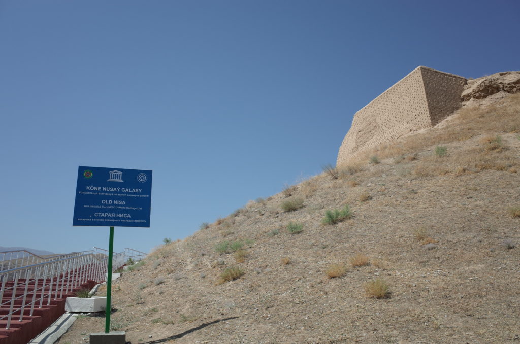世界遺産、ニサ遺跡。パルティア王国時代の都市遺跡。アジアと地中海諸国、東西を結ぶシルクロード上の交差点ともなっており、重要な役割を果たしたらしい。日差しを遮るものが何もなく、ここもただただ暑い。。