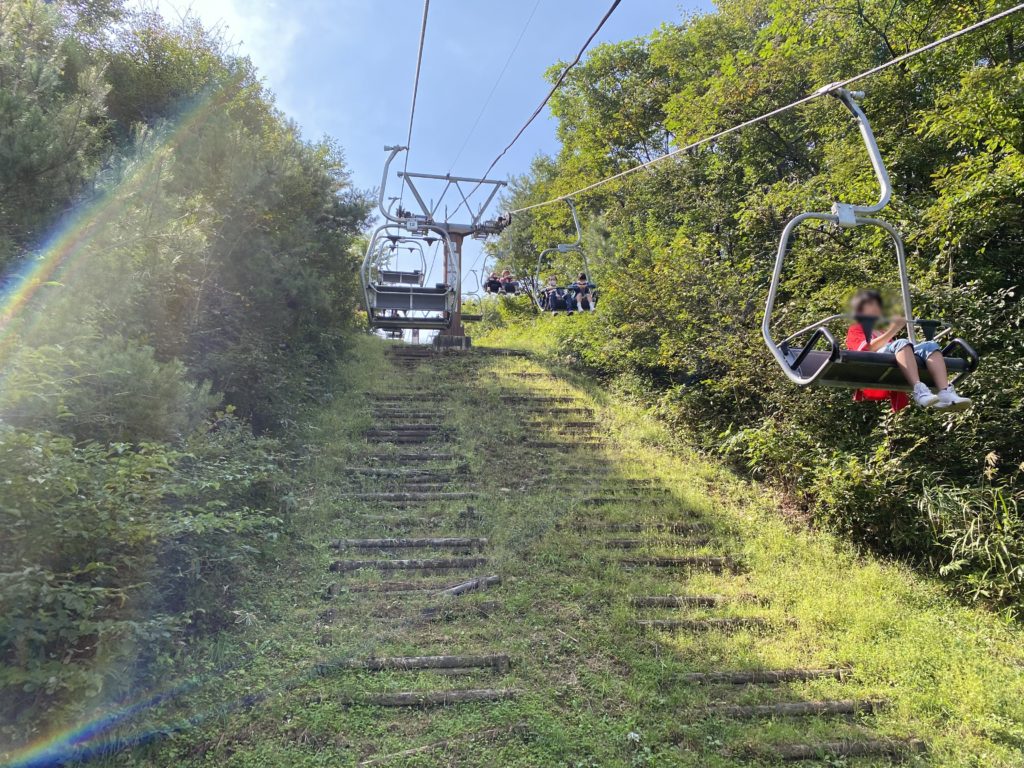 行きは山道を歩いたけれど、帰りはリフトで楽々。
