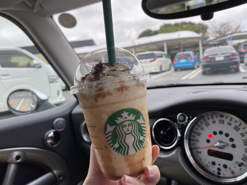 帰りにサービスエリアのスタバで、チョコレートマロンフラペチーノ。