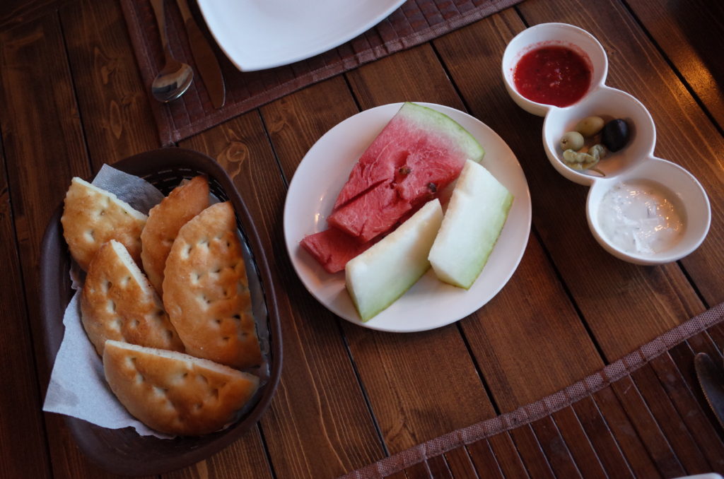 あんまりお腹もすいておらず、またクリームスープを頼む私。あとレモネードかな。ただパンがかちかちで、アシガバードのふわふわパンが恋しすぎた。